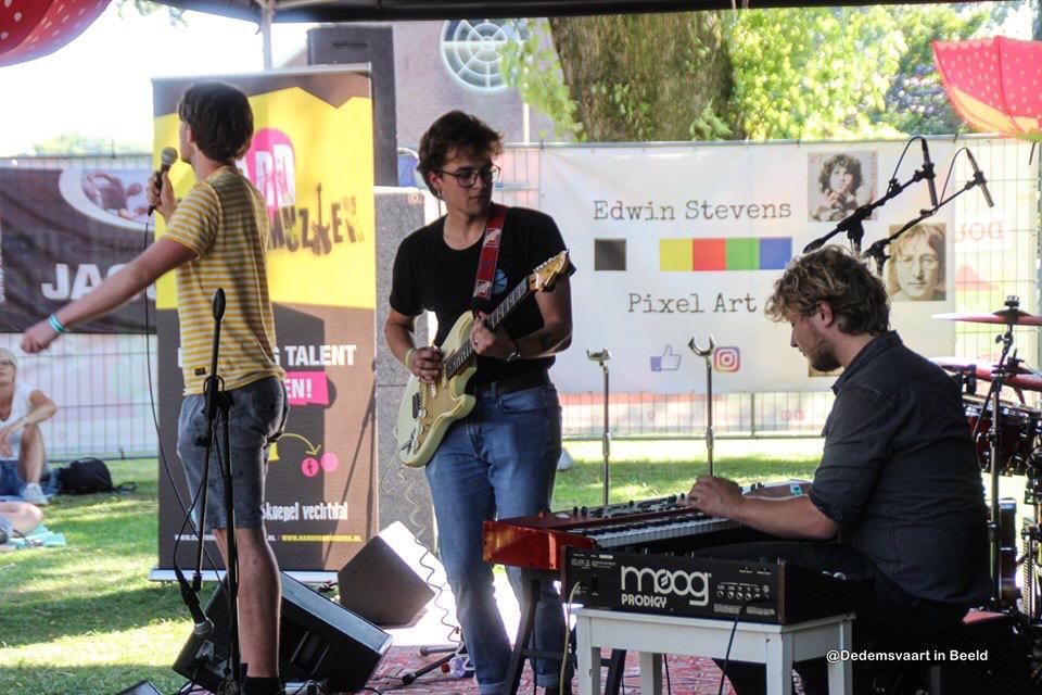 Het was een warme dag in augustus toen het 'Strawberry Fields Festival' in volle glorie in het gemeentepark van Dedemsvaart gaande was. Wij speelden op het podium bij de ingang en kozen voor de verandering iets meer eigen nummers. Wat zo tof is aan een festival, is dat mensen veel meer bereid zijn om een onbekend bandje te gaan bekijken. Ze komen tenslotte niet voor iets specifieks en er is zoveel te zien! Het optreden ging lekker en we kregen veel complimentjes van het publiek, iedereen was enthousiast! Bovendien bleven er ook erg veel mensen kijken, niet alleen mensen die we zelf hadden uitgenodigd.